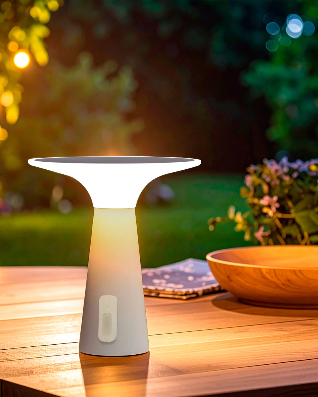 Questa lampada da tavolo per esterni da 3W offre una luce calda e accogliente, ideale per cene all’aperto, serate estive e momenti di relax. Grazie alla batteria ricaricabile con ricarica USB, può essere utilizzata ovunque senza cavi, risultando perfetta per giardino, terrazza, picnic o campeggio. Il design portatile, moderno e leggero la rende facile da spostare e adatta a qualsiasi stile decorativo, mentre la struttura resistente e durevole garantisce affidabilità anche all’esterno.