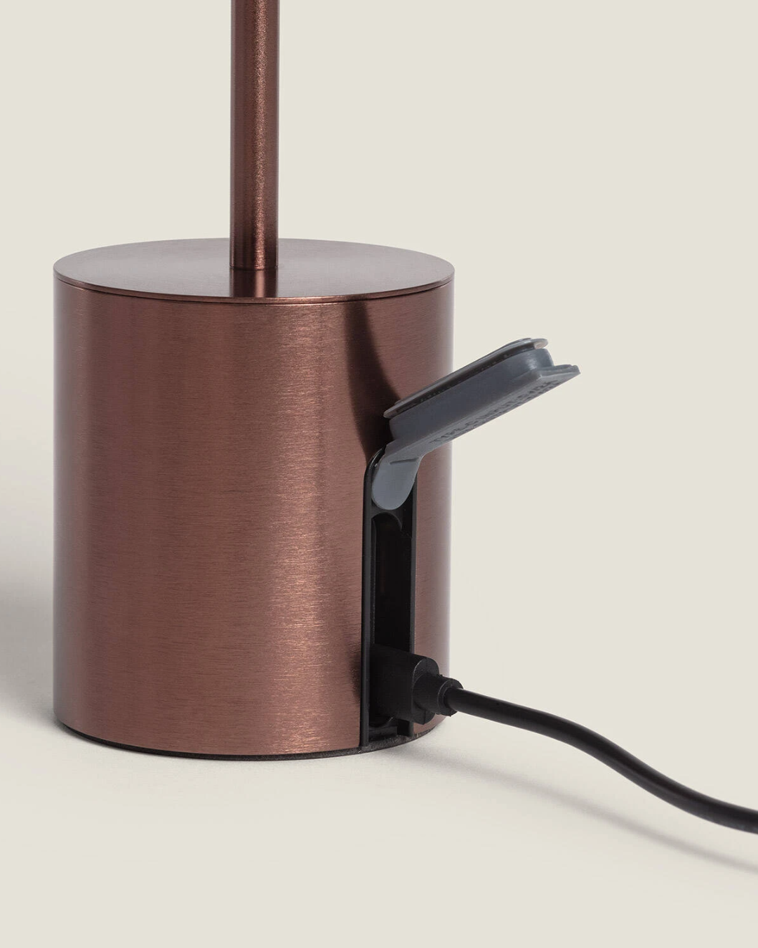 Lampada da tavolo portatile ideale per spazi esterni, con un elegante design in metallo che unisce stile e funzionalità. Perfetta per cene, giardino o terrazza, crea un’atmosfera accogliente e rilassante in ogni occasione.