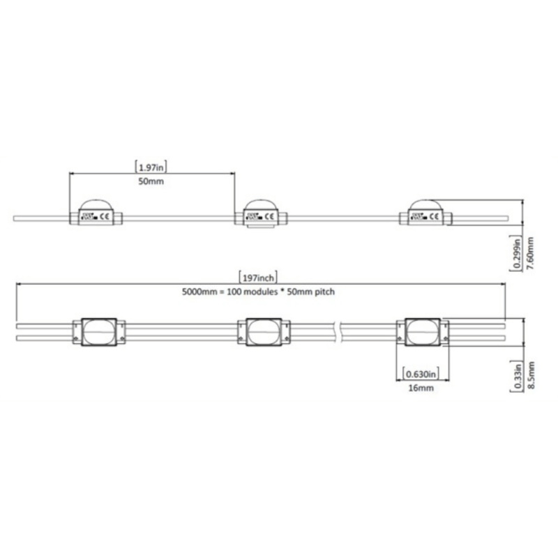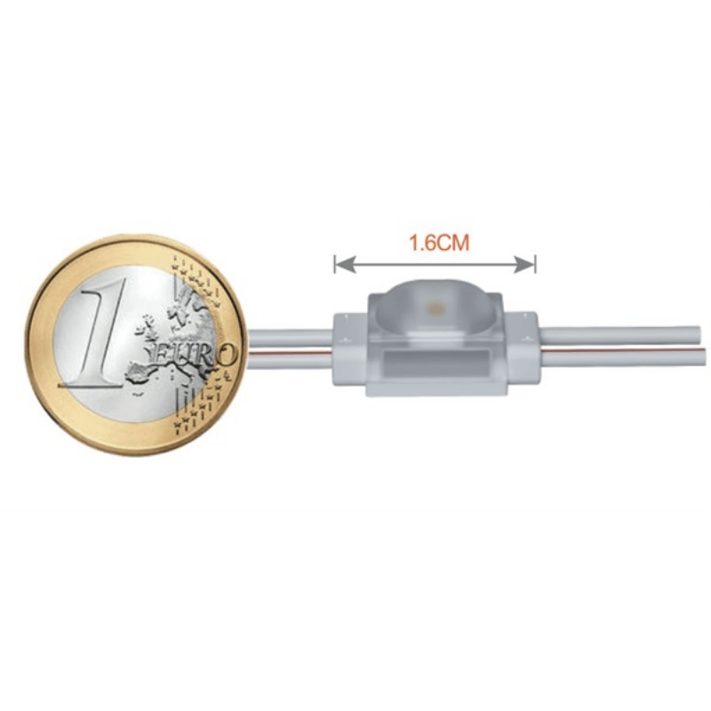 Compatto, efficiente e facile da installare: ogni modulo LED consuma solo 0,36W e offre 41 lumen (114 lm/W) con luce fredda 6500K, ideale per insegne e retroilluminazioni brillanti. Grado di protezione IP67 contro acqua e polvere, con biadesivo 3M per fissaggio rapido e sicuro. Fornito in catena da 100 pezzi, certificato CE, RoHS e UL, con garanzia 5 anni.