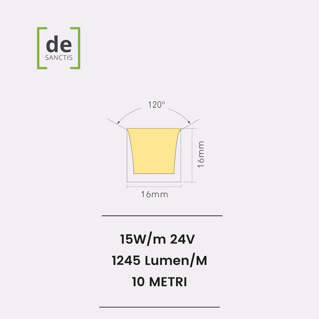 Neon Led Flex 1616 Flat Top View 15W/Mt 24V 6000K Ip67 – Bobina 10Mt – De Sanctis Light & Design