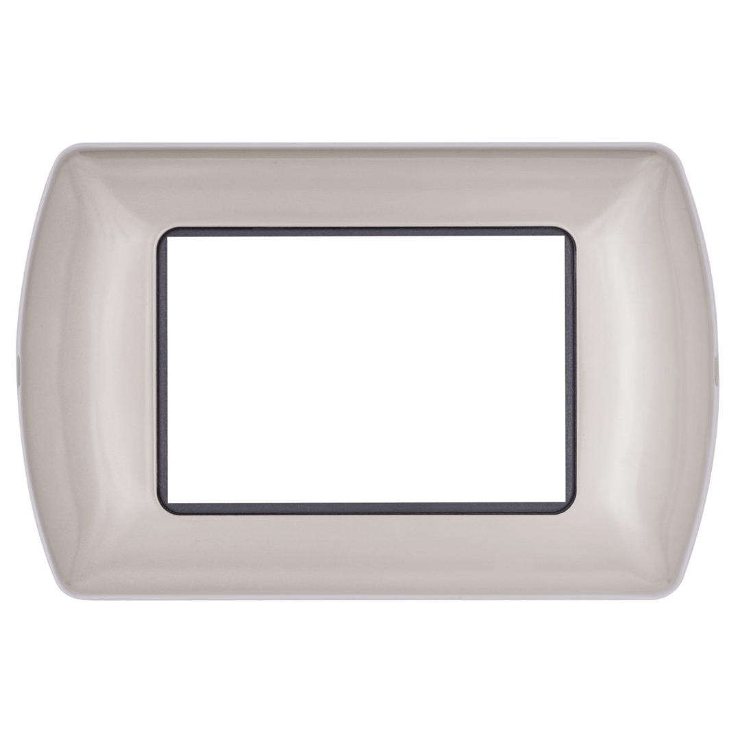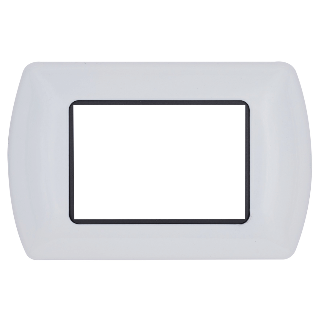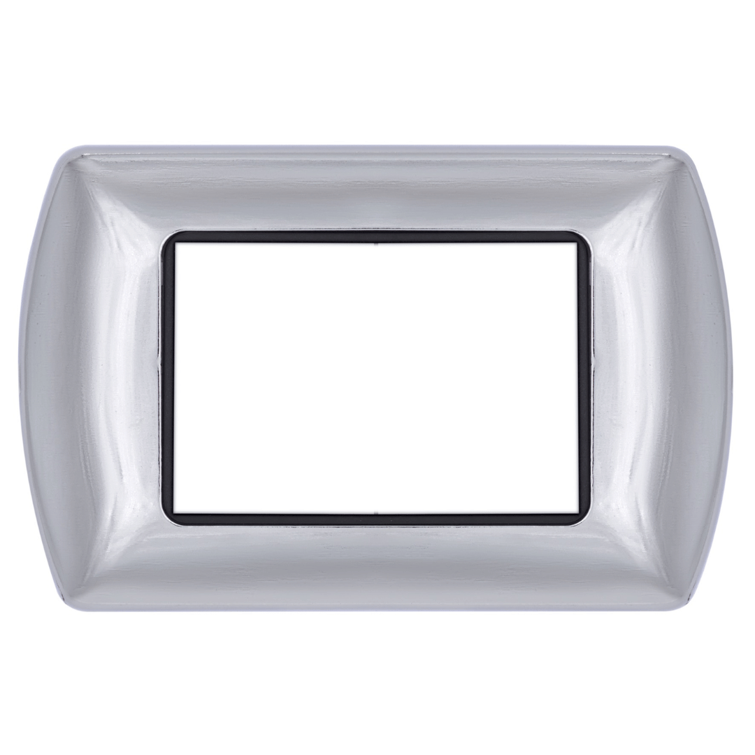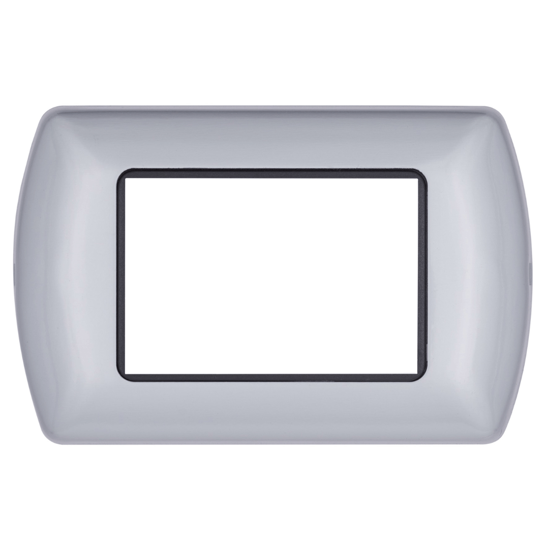 Arricchita da una cornice interna cromata che ne valorizza l’estetica. Disponibile in una gamma di 8 colori, abbinabili ai frutti alluminio, bianco o nero. Disponibile nei formati 3, 4 e 7 moduli.