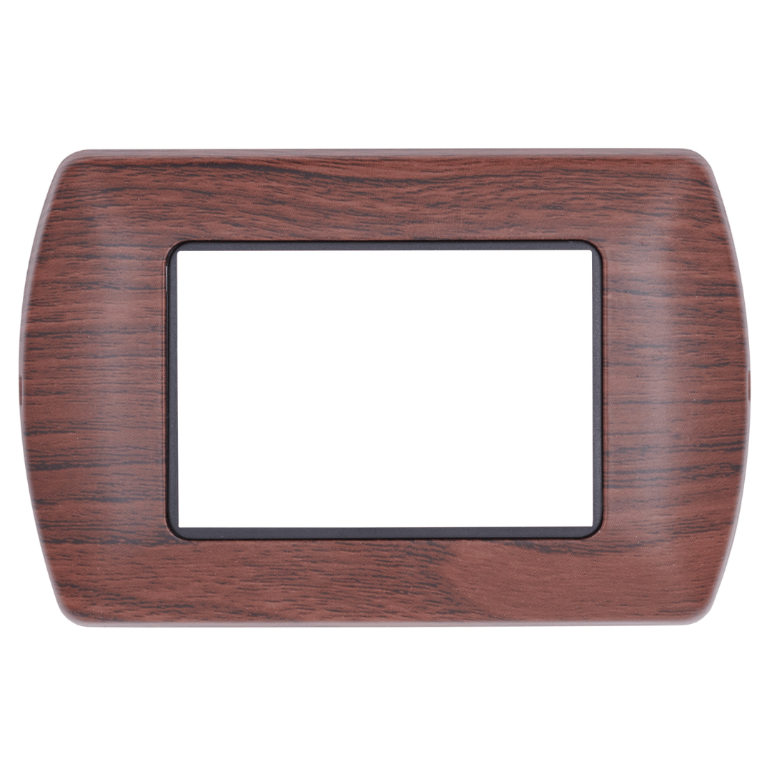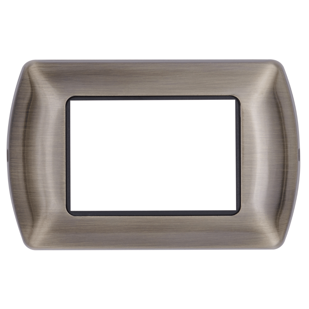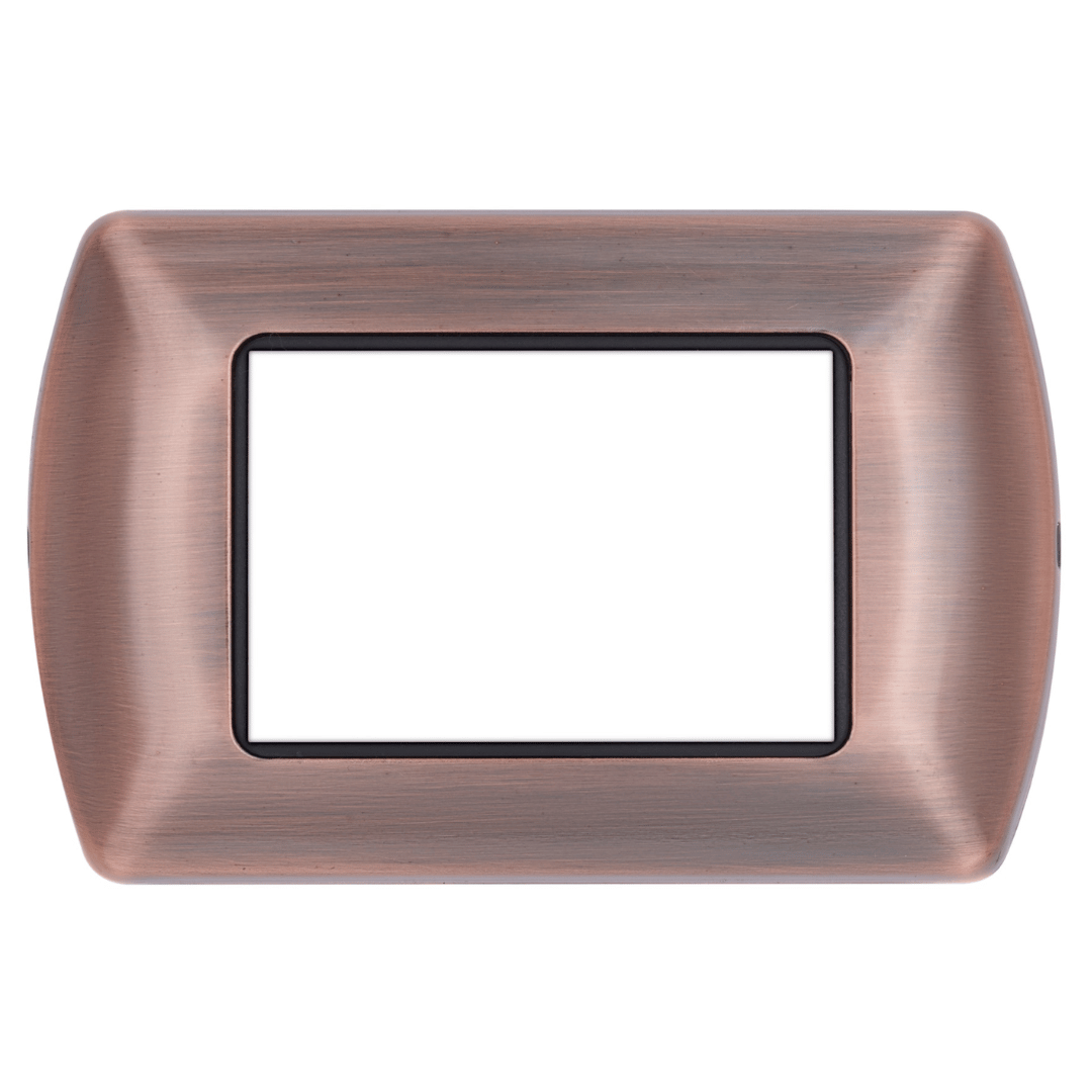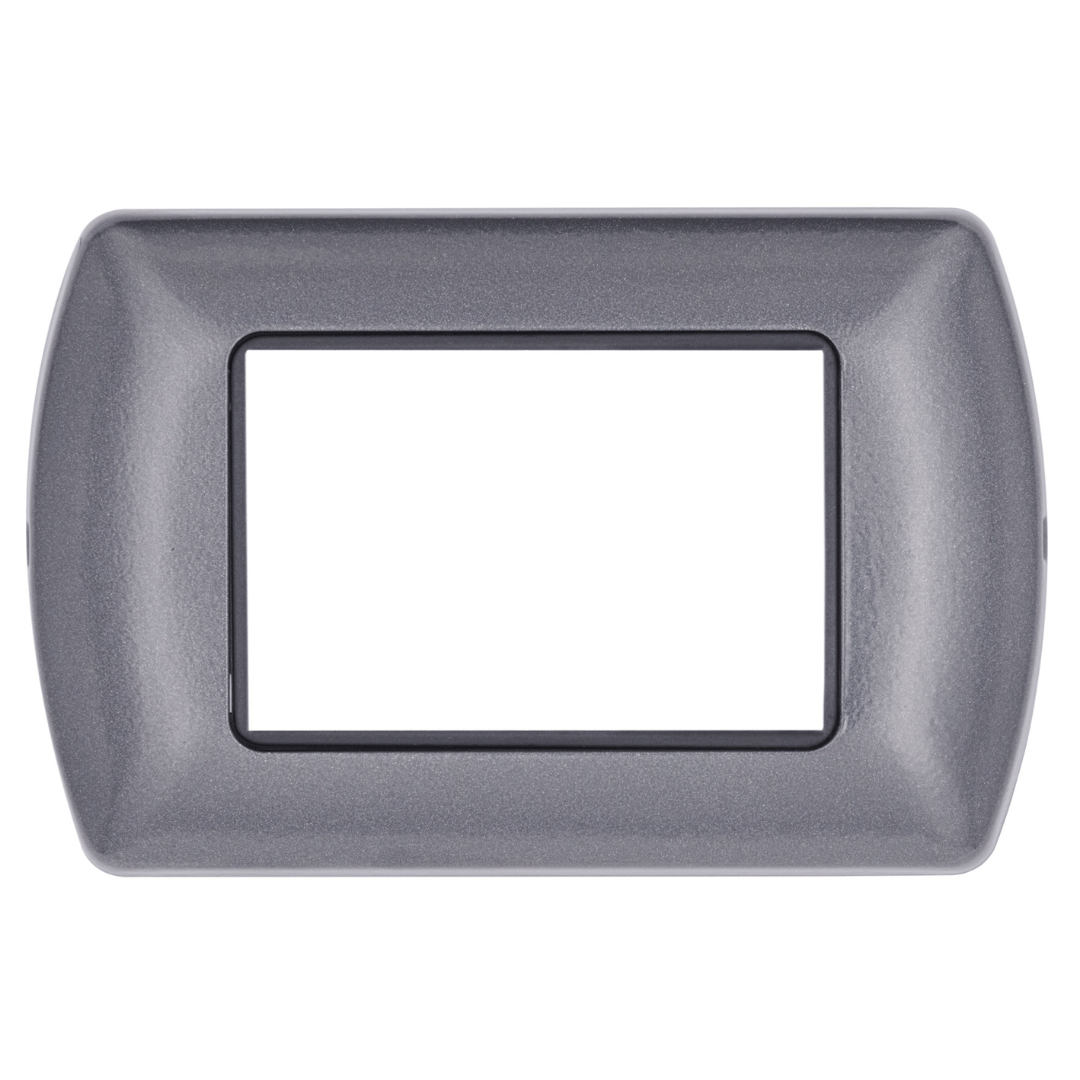 Arricchita da una cornice interna cromata che ne valorizza l’estetica. Disponibile in una gamma di 8 colori, abbinabili ai frutti alluminio, bianco o nero. Disponibile nei formati 3, 4 e 7 moduli.