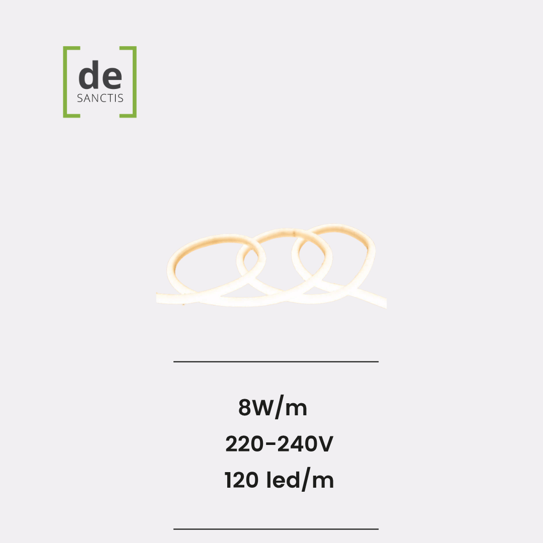 Striscia LED Neon Regolabile 220V Circolare 8W/m IP65 Taglio 100cm – De Sanctis Light and Design