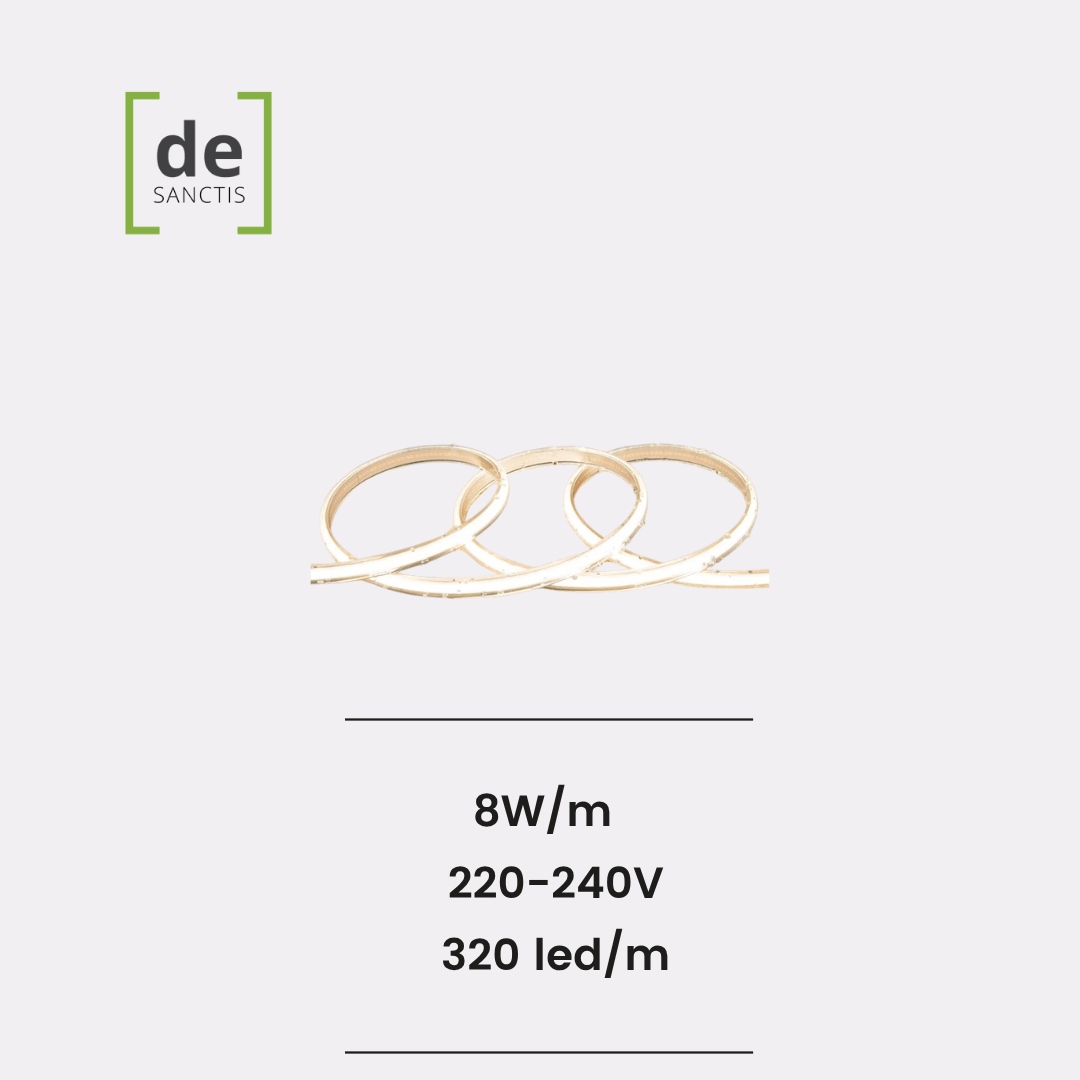 Striscia LED Regolabile 220V COB 8W/m Larga 12mm IP65 CRI90 Taglio 50cm – De Sanctis Light & Design