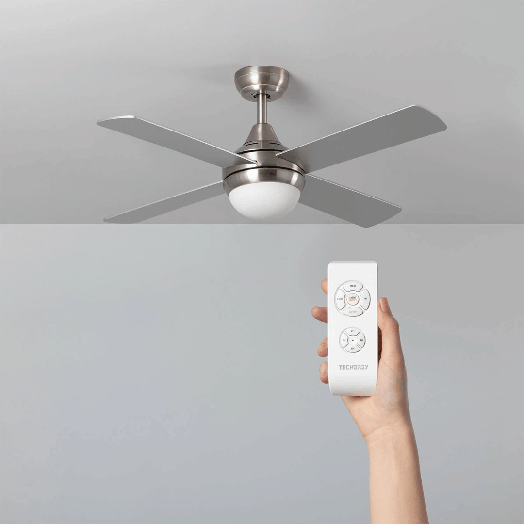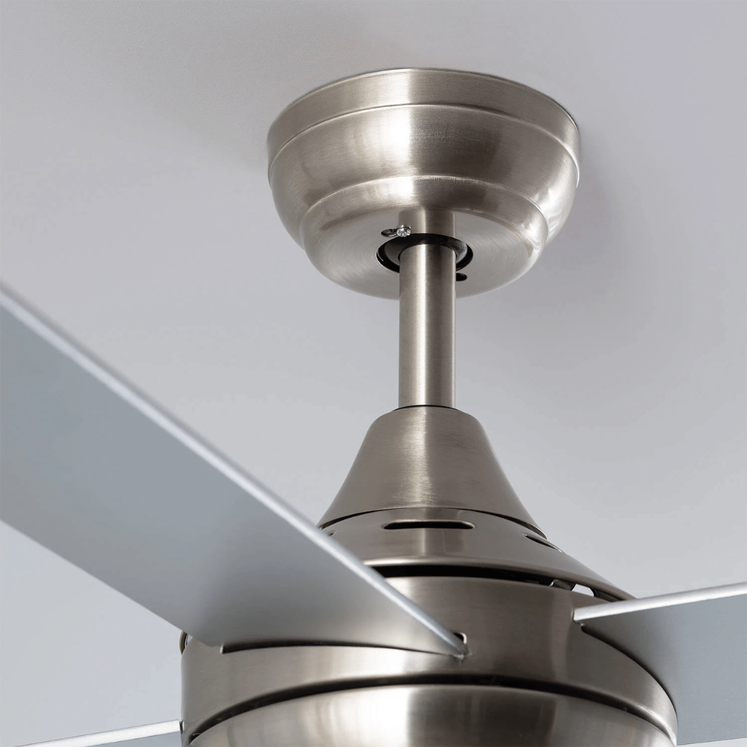 Il Ventilatore da Soffitto Navy Nichel 110cm con motore AC e una potenza di 53W ha un aspetto moderno ed elegante che lo rende un elemento decorativo e funzionale