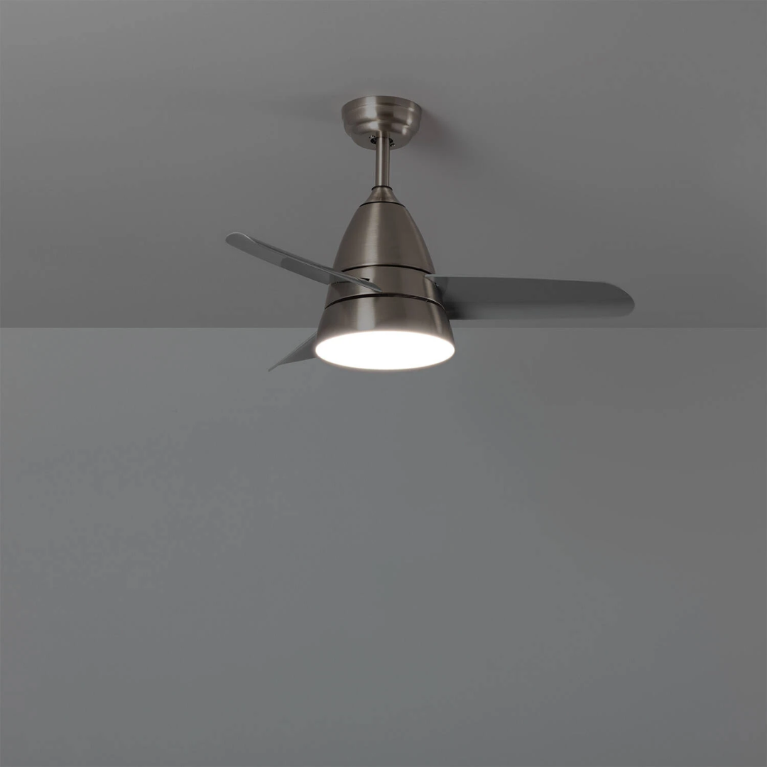Il Ventilatore da Soffitto Silenzioso Industrial Argento 91cm Motore DC incorpora una sorgente luminosa LED da 15W. Presenta un design industrial ed elegante che lo rende un elemento molto decorativo e funzionale.
