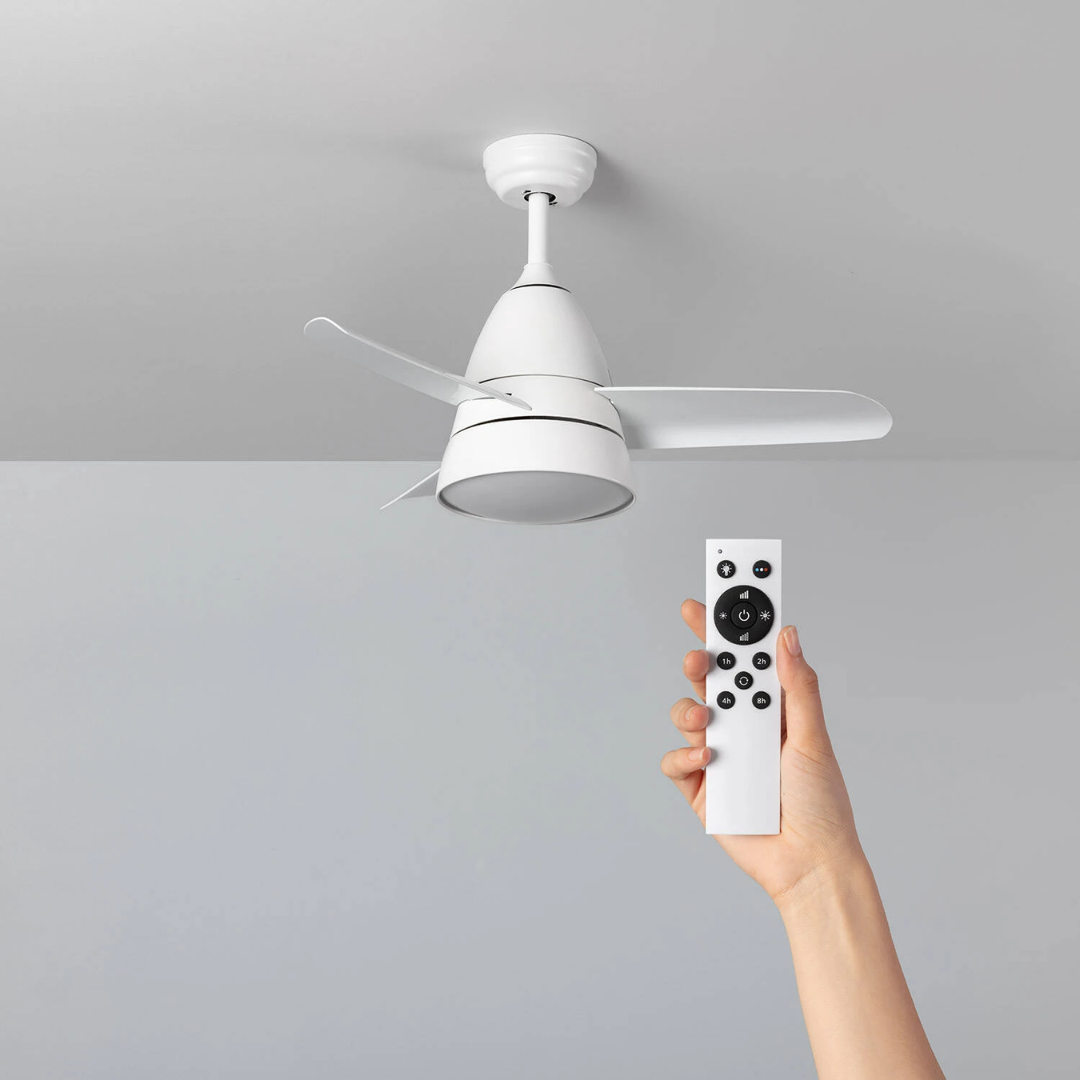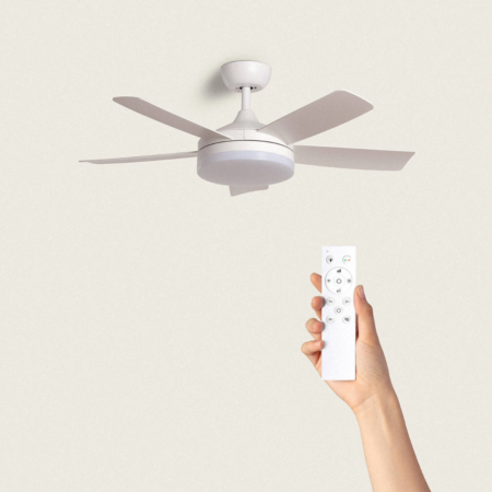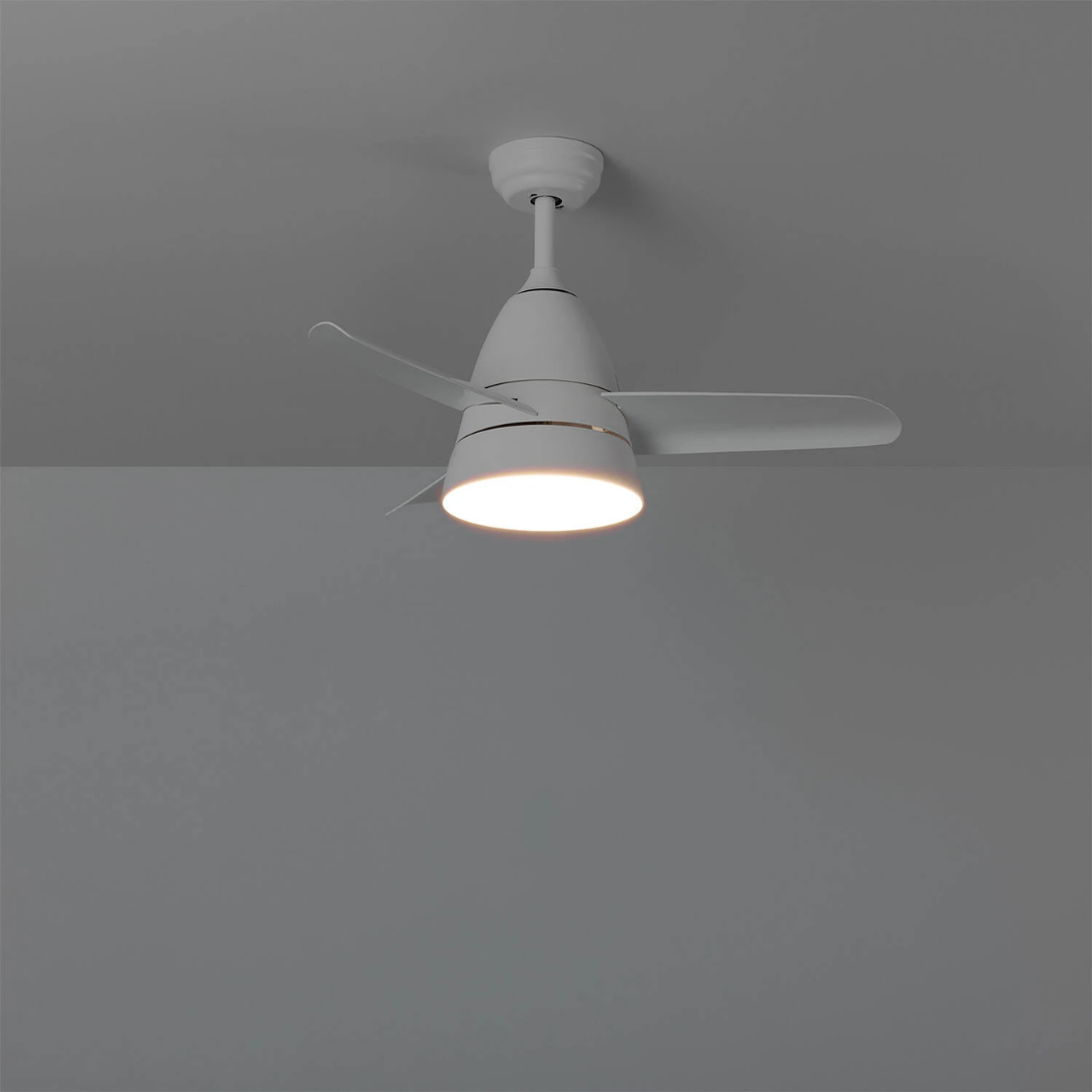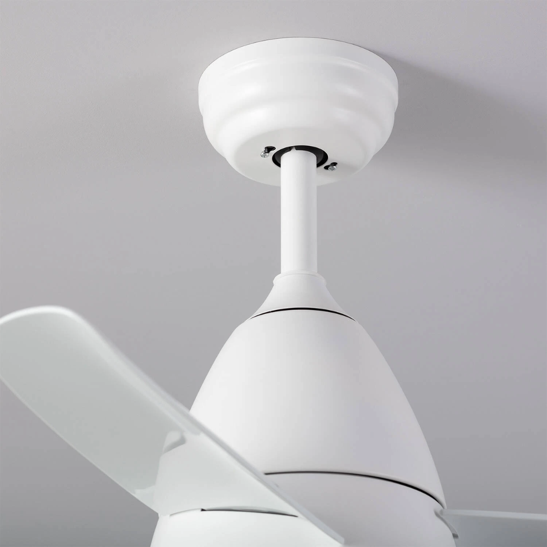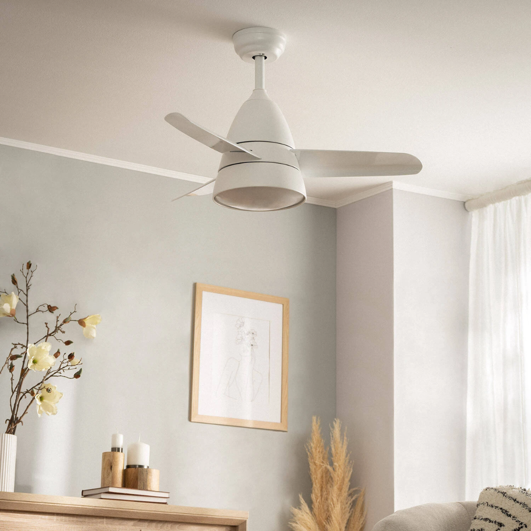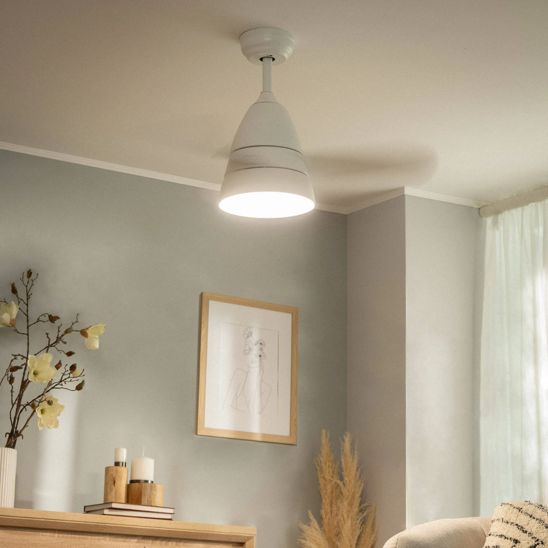 Il Ventilatore da Soffitto Silenzioso Industrial Bianco 91cm Motore DC da 40W incorpora una sorgente luminosa LED da 15W. Presenta un design industrial ed elegante che lo rende un elemento molto decorativo e funzionale.