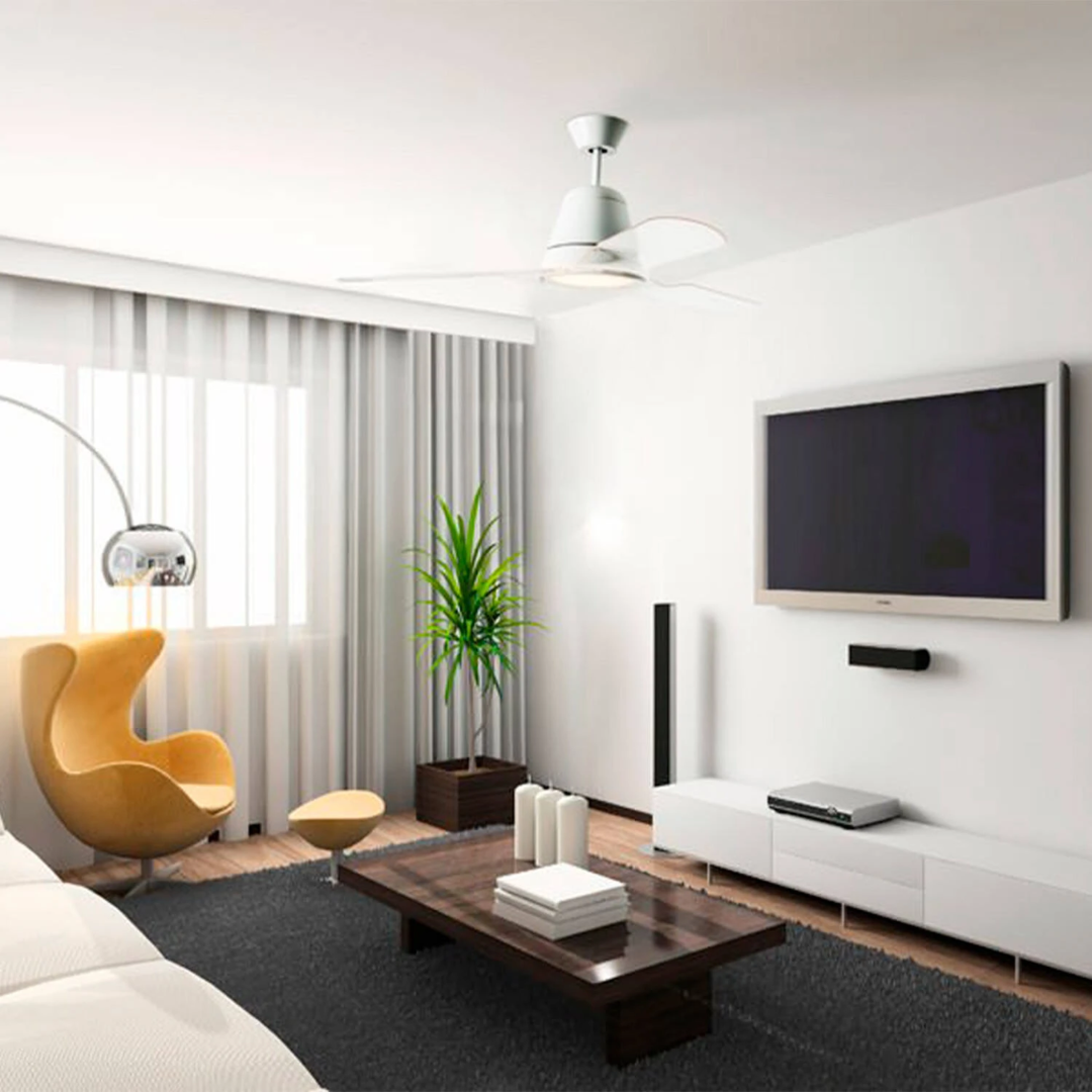 Il Ventilatore da Soffitto Silenzioso Tiga Bianco DC 132cm Motore DC LEDS-C4 30-3249-CF-M1 incorpora una fonte di luce LED di 18.9W di potenza totale, presentando un aspetto minimalista ed elegante che lo rende un elemento decorativo e funzionale.