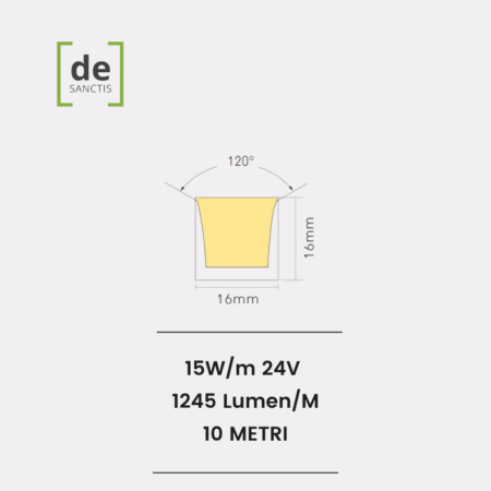 Neon Led Flex 1616 Flat Top View 15W/Mt 24V 6000K Ip67 – Bobina 10Mt – De Sanctis Light & Design