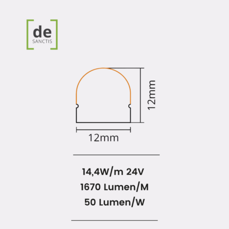 Neon Led Flex 1212 Dome Top View 14,4W/Mt 24V Ip67- 5Mt – De Sanctis Light & Design