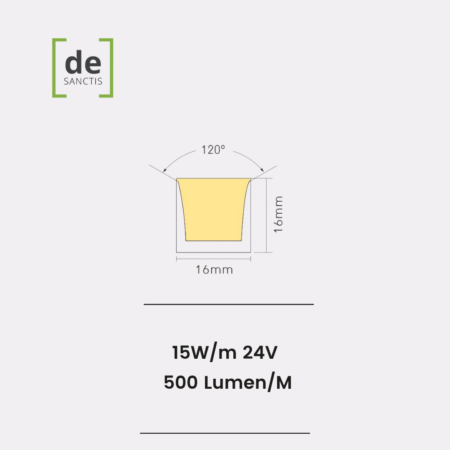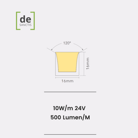 Neon Led Flex 1616 Flat 3D Side & Top View 10W/Mt 24V Ip65 – 5 Metri – De Sanctis Light & Design